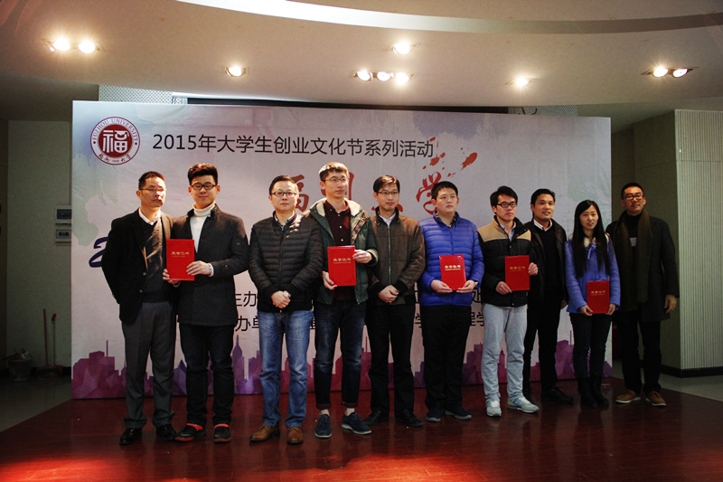 承办的“福州大学2015年十佳创业项目大赛”决赛,在素拓多功能厅举行。本次大赛有幸邀请到福建创科金融服务有限公司总经理施志峤先生、福建阳光能量孵化器管理有限公司执行董事兼CEO陈秀斌先生、福州市道明投资管理有限公司执行董事王震先生、北辰星资本飞马旅福建中心总经理胡顺强先生、永益物联网投资总经理徐国铭先生担任评委。福州大学学生处副处长叶青,就业中心主任张志忠担任嘉宾。