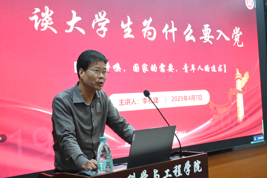 4月7日晚,院党委书记李礼建老师作《谈大学生为什么要入党》为主题的专题党课,李礼建书记从现阶段国际国内形势切入,结合丰富详实的案例、融入党的基本知识,从党的呼唤、国家需要和青年人的追求三个层面,以深入浅出的语言就大学生的政治追求和入党动机问题进行深刻阐述。李书记强调,青年与民族复兴同向同行,是历史的必然,也是青春的荣光。中国共产党擘画的蓝图中,每一个目标都是青年奋斗的坐标,也是青年建功的机遇。他勉励学生入党积极分子加强理论学习、提高政治站位、端正入党动机,感党恩、听党话、跟党走,不断增强“四个意识”、坚定“四个自信”、做到“两个维护”,实现“与家国未来双向奔赴”。