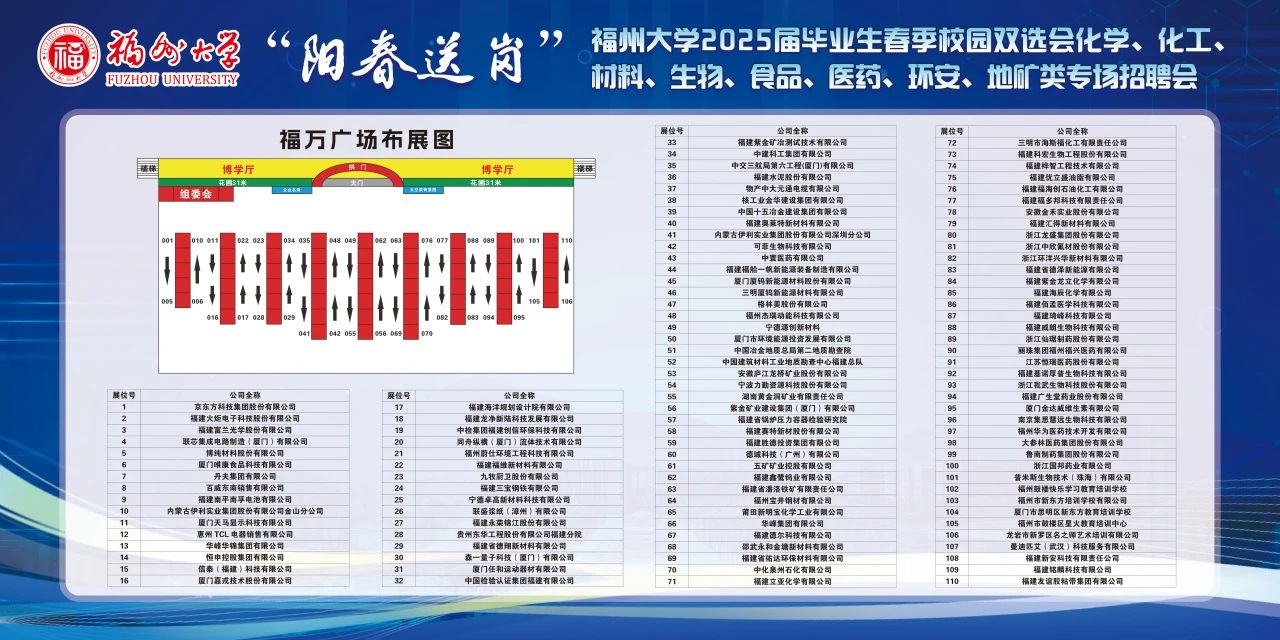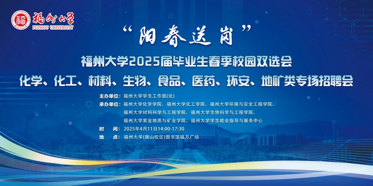 六院和大学生就业创业指导中心联合承办的“阳春送岗•千校万岗”福州大学2025届毕业生化学、化工、材料、生物、医药、环安、地矿类专场双选会于4月11日下午14:00在福州大学旗山校区图书馆福万广场举办。校党委常委、副书记王向阳、学生工作部(处)负责人、相关德州扑克游戏