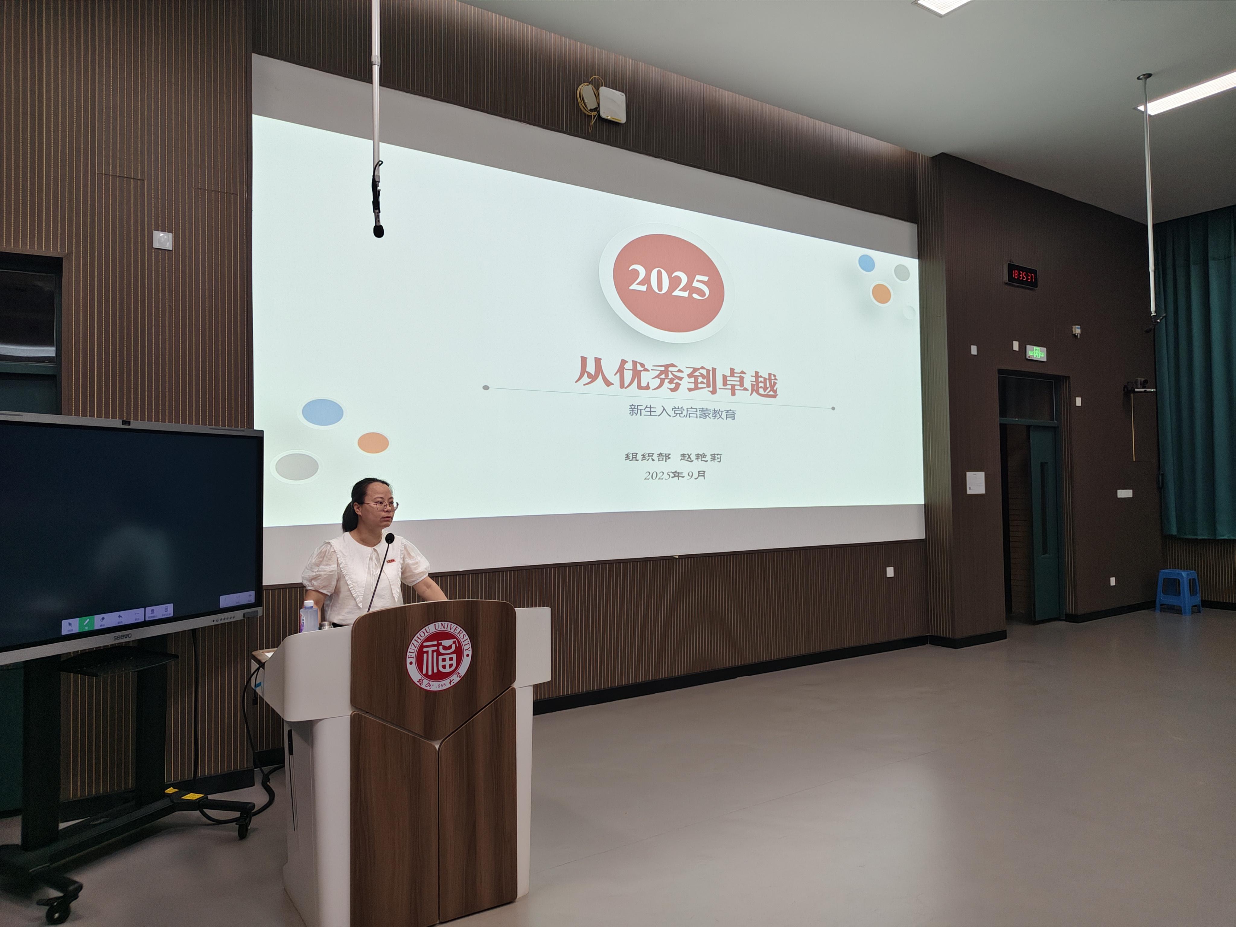 为进一步强化2025级研究生思想引领,校党委组织部赵艳莉老师于9月11日走进旗山校区东2-100,为新生带来入党启蒙与“三观”教育主题讲座。赵老师首先带大家回顾了中国共产党从诞生到发展的光辉历程,结合时代使命与青年责任,引导新生思考“为什么入党、怎样入党”,在价值多元的时代找准人生坐标,把个人理想写进民族复兴的大论文。