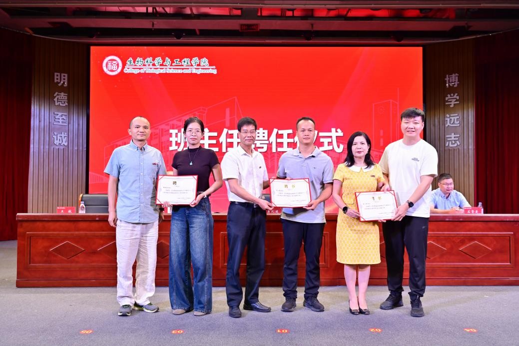 在班主任聘任仪式中,王航副院长宣读了2025级本科班主任聘任决定。院领导为何小镇、胡桓、郑瑜雪等三位新生班主任颁发聘书并合影留念。在未来的四年中,他们将以学识为舟、责任为桨,引领生工新生遨游学术海洋,为学生的成长成才指引方向、保驾护航。