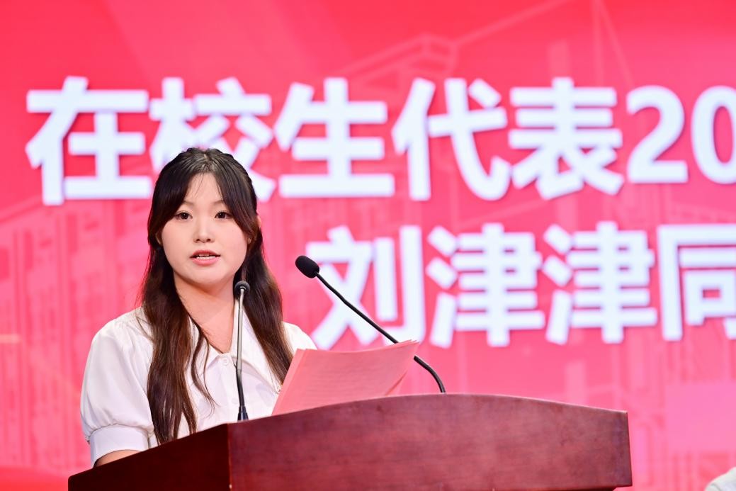 2022级食品科学与工程专业本科生刘津津作为在校生代表发言,结合三年深耕学业、攻坚科研与实践服务等经历,分享成长感悟。她表示,生工学子应传承福州大学的“三种精神”,在学术研究中沉心钻研、在时代使命中主动担当,鼓励2025级新生在福大生工的沃土上,书写兼具学术深度与社会温度的青春篇章。