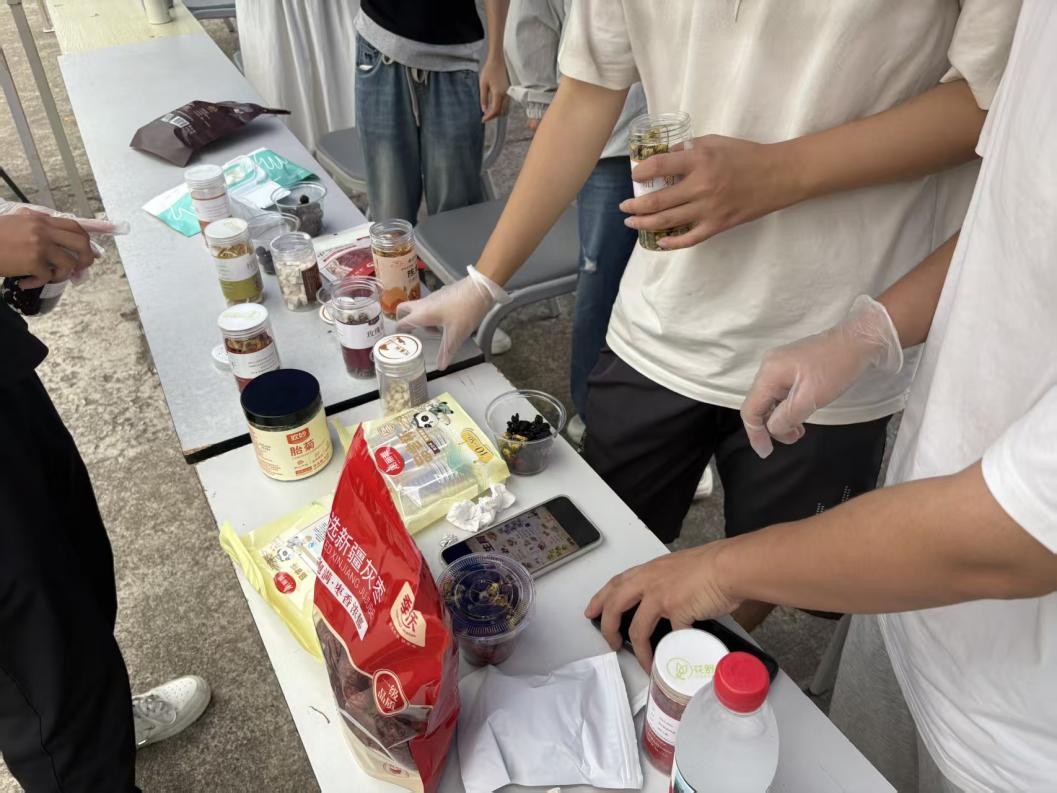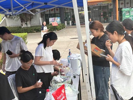 食品二班团支部,于铜盘校区食堂门前共同开展了“药食同源,健康同行——中医药膳养生茶”主题科普体验活动。活动立足于“学、思、践、悟、行”五个维度,融合专业特色与青年创意,旨在普及中医药食同源文化,强化健康养生意识,引导学生在服务中践行专业所学,弘扬传统中医药智慧。