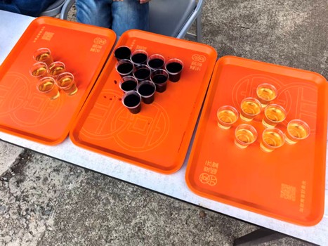 活动现场设置了理论讲解与动手实践两大环节。支部成员前期系统梳理了枸杞、菊花、山楂等常见药食同源食材的性味与功效,转化为通俗易懂的科普内容,搭建起传统中医知识与现代生活的认知桥梁。在体验区,同学们引导师生及食堂工作人员亲手搭配、称重、泡制个性化养生茶饮,将抽象理论转化为可触可感的实践过程。现场还提供了预先调配的茶饮小样,供大家在忙碌间隙品尝,感受中医药膳的独特魅力。整个过程互动频繁、气氛热烈,参与者在体验中加深了对药食同源理念的理解,也提升了健康生活的兴趣。