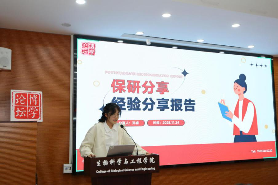 学习部在生工北楼柏物产厅成功举办保研经验分享会。本次分享会邀请了成功保研至国内知名高校的三位2022级本科生——孙睿、刘津津和吴海燕。她们不仅分享了保研成功的宝贵经验,还提供了详尽的备考指南,让同学们对未来学涯发展有了更清晰的规划。