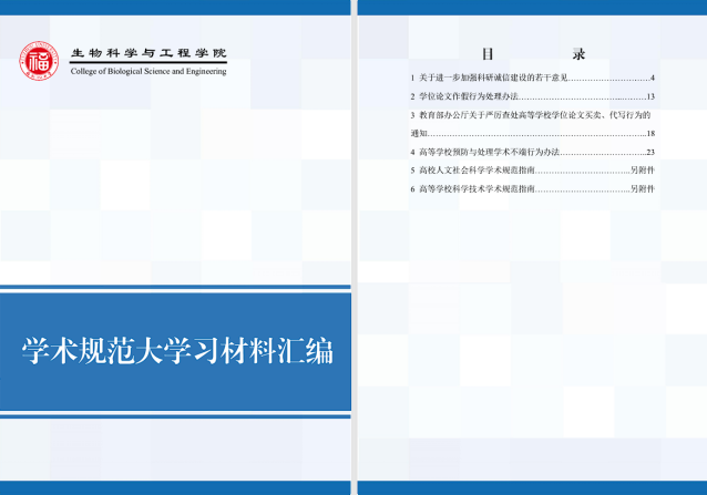 院研究生会将《关于进一步加强科研诚信建设的若干意见》《学位论文作假行为处理办法》《高等学校预防与处理学术不端行为办法》等政策法规,以及《高等学校科学技术学术规范指南》和《福州大学研究生手册》等文件规范汇编成册。在此基础上,组织全体研究生以主题班会与个人自学相结合的方式系统学习汇编材料,引导研究生明晰底线、心存敬畏,深刻理解科研诚信作为学术生命线的基本准则,夯实规范研究的认知基础。