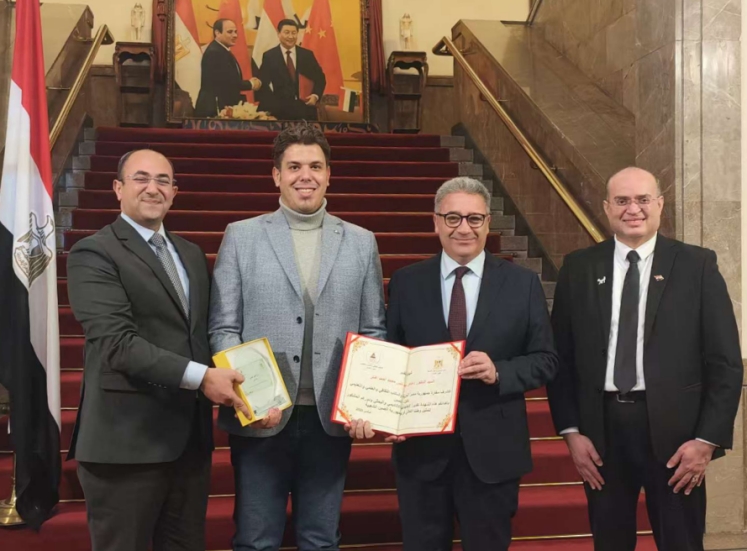 颁奖仪式在埃及驻华大使馆大使及教育代表团重要成员的见证下举行,包括埃及驻华大使H.E. Ambassador Khaled Ahmed Farouk Nazmy阁下,副大使Mr. Haitham Abdel-Hadi先生,以及埃及驻北京国防武官Brigadier General Ahmed El-Houty先生。