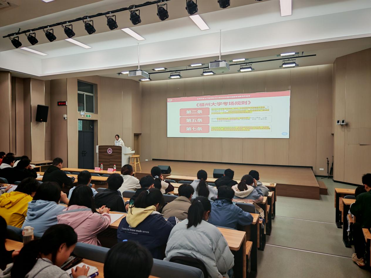 新生辅导员杜美佳带领全体同学深入学习《福州大学学生管理规定》中有关考试违纪相关条款,结合具体条文,系统阐释了考试行为规范与违纪“红线”,强调务必摒弃侥幸心理,坚持诚信应考,以扎实的复习和真实的成绩迎接期末考试。她还就年级重点工作进行了通报,并对寒假安排作了详细说明,重点开展了假期安全教育,围绕离校、返校及居家期间的安全注意事项作出温馨提醒,引导同学们增强安全防范意识,平安度过假期。