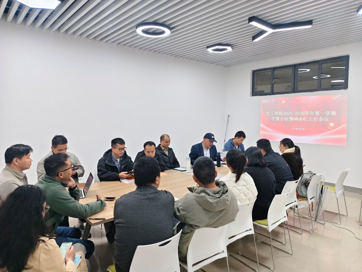 在嘉锡楼召开2025-2026学年第二学期学情分析暨班主任工作会议。会议由院党委副书记曹仁秋主持,副院长王航、本科生辅导员及全体班主任参加会议。